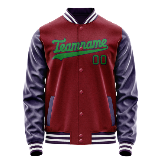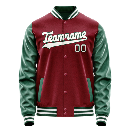 Custom Crimson Kelly-Green Solid Color Varsity Letterman Jacket
