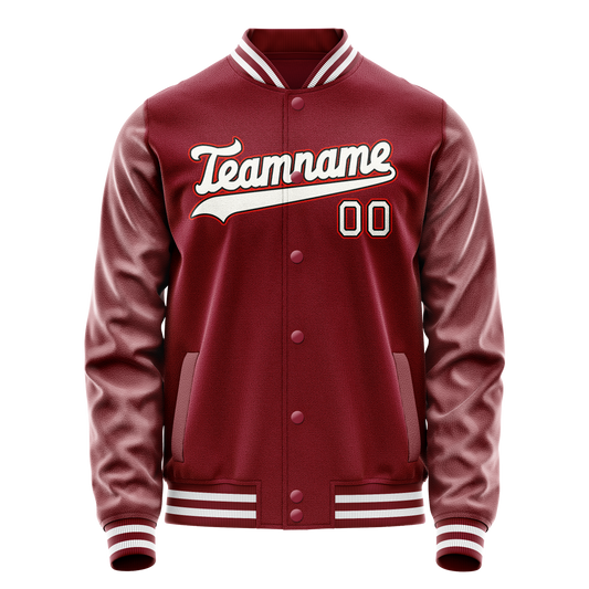 Custom Crimson White Solid Color Varsity Letterman Jacket