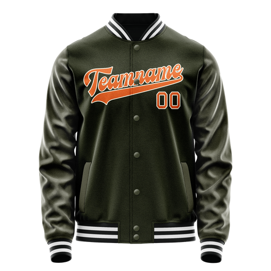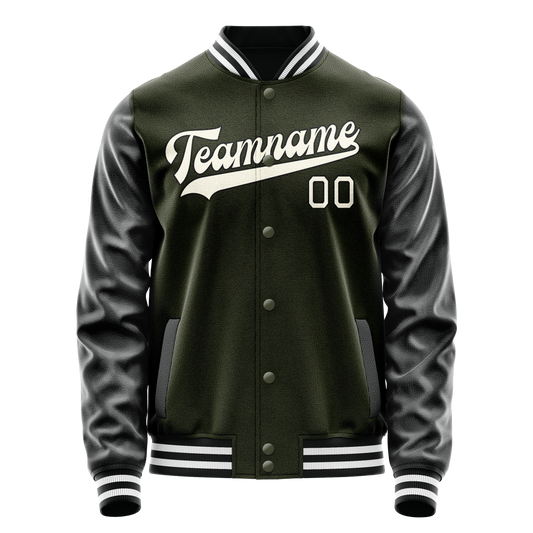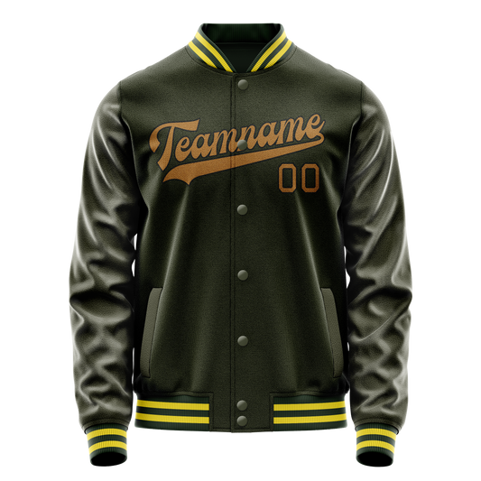 Custom Olive Black Solid Color Varsity Letterman Jacket