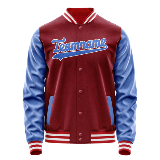 Custom Crimson Light-Blue Solid Color Varsity Letterman Jacket