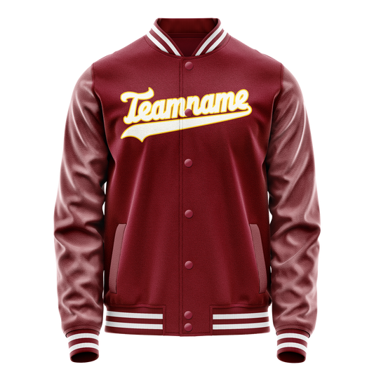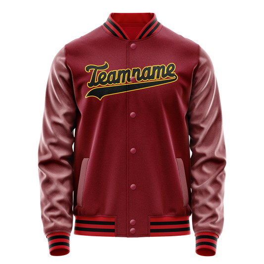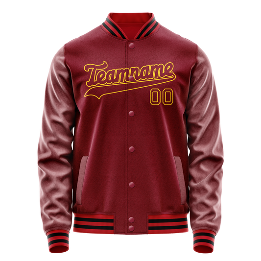 Custom Crimson Gold Solid Color Varsity Letterman Jacket