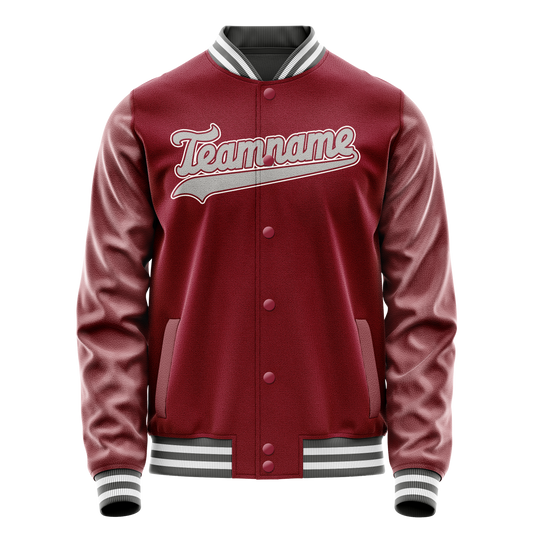 Custom Crimson Gray Solid Color Varsity Letterman Jacket