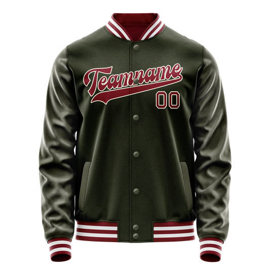 Custom Olive Red Solid Color Varsity Letterman Jacket