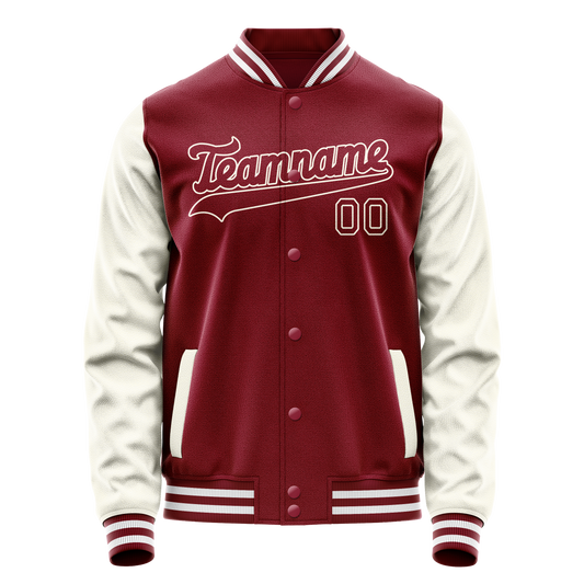 Custom Crimson Cream Solid Color Varsity Letterman Jacket