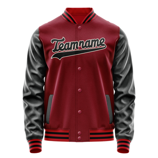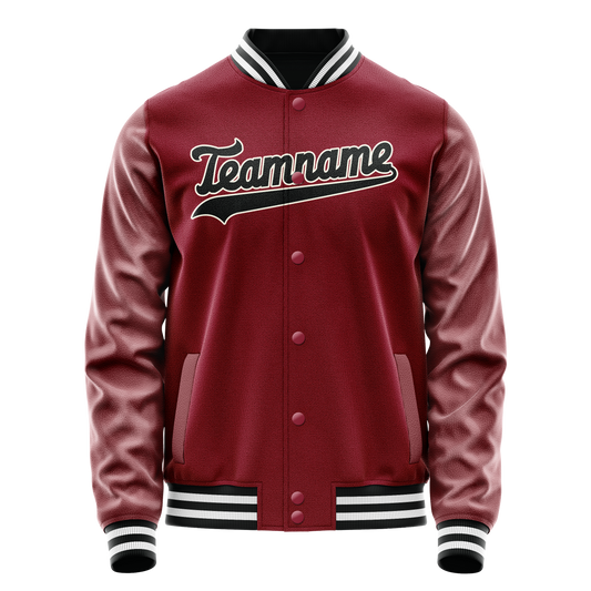Custom Crimson Black Solid Color Varsity Letterman Jacket