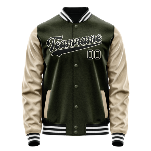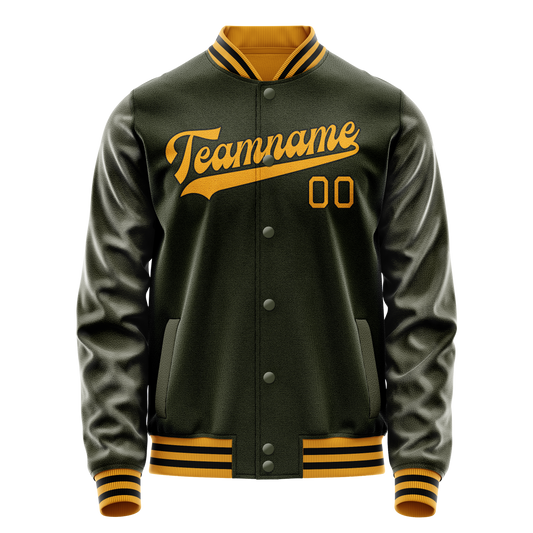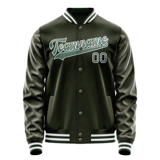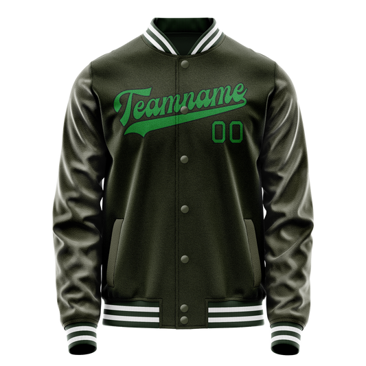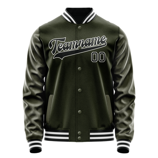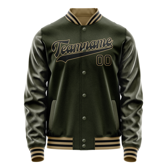 Custom Olive Black Solid Color Varsity Letterman Jacket