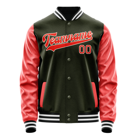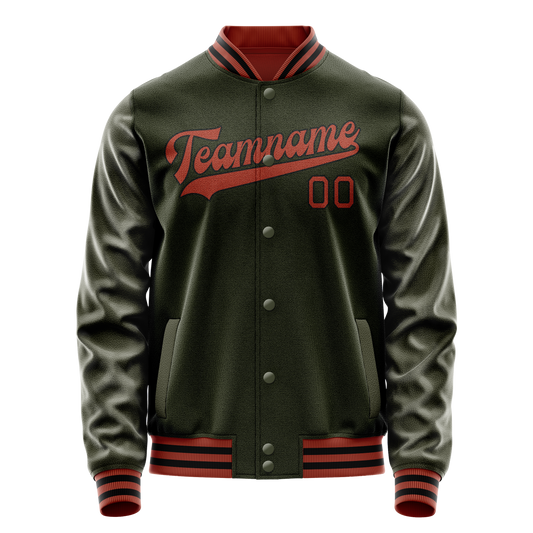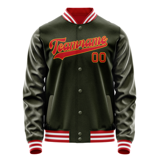 Custom Olive Red Solid Color Varsity Letterman Jacket