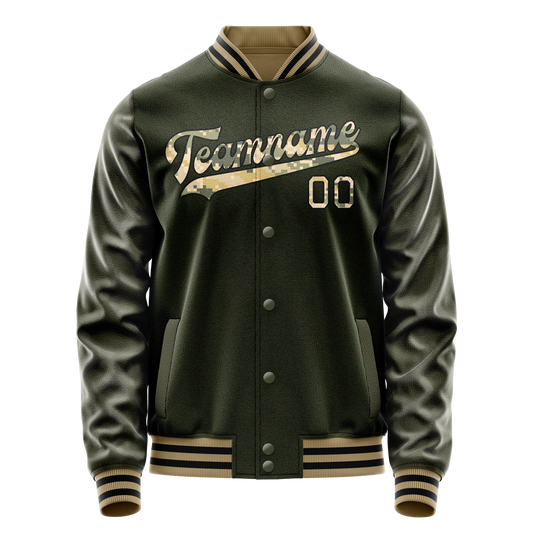 Custom Olive Camo Solid Color Varsity Letterman Jacket