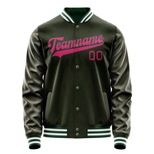 Custom Olive Pink Solid Color Varsity Letterman Jacket