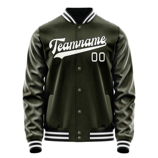 Custom Olive White Solid Color Varsity Letterman Jacket