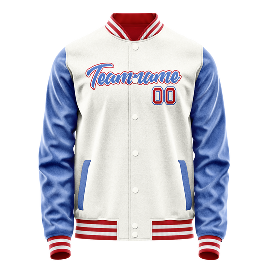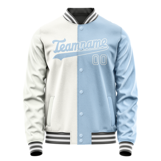 Custom White Light-Blue Split Varsity Letterman Jacket