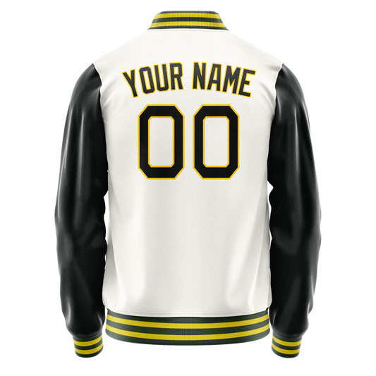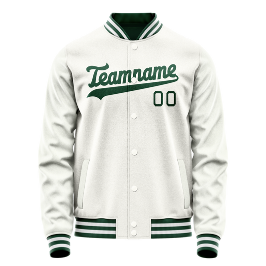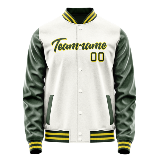 Custom White Kelly-Green Solid Color Varsity Letterman Jacket