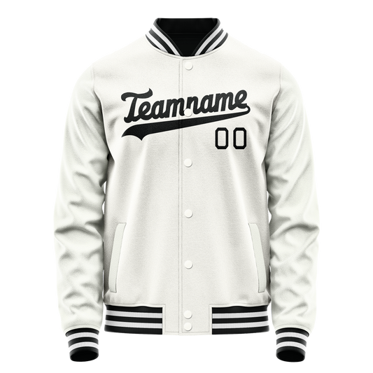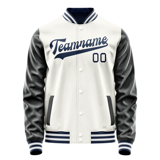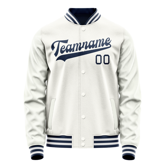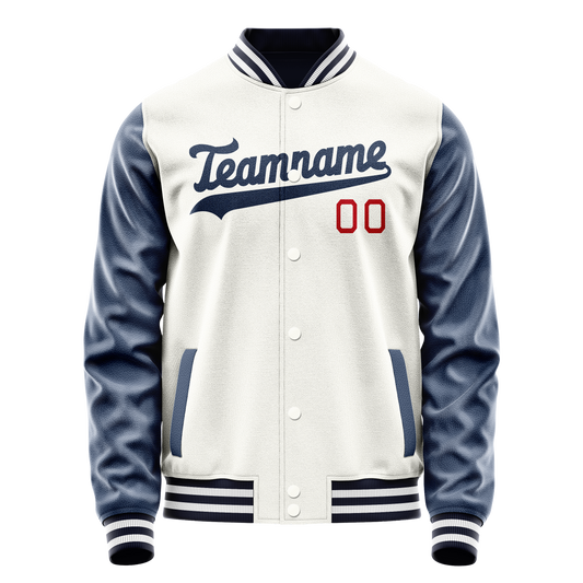Custom White Navy Solid Color Varsity Letterman Jacket