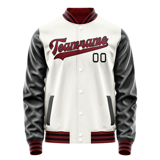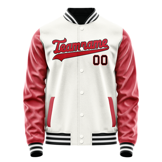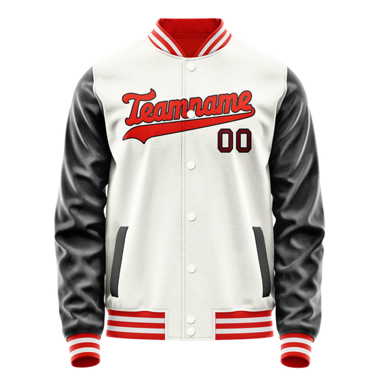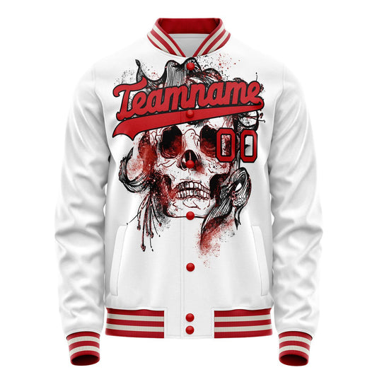 Custom White Red 3D Pattern Skull Varsity Letterman Jacket