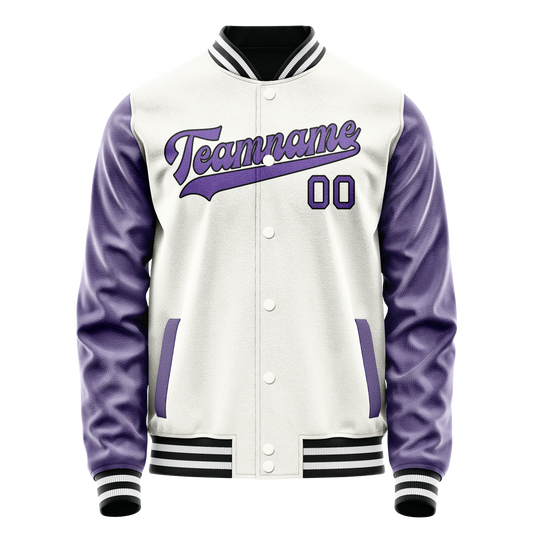 Custom White Purple Solid Color Varsity Letterman Jacket