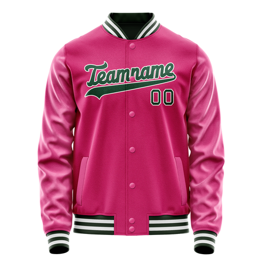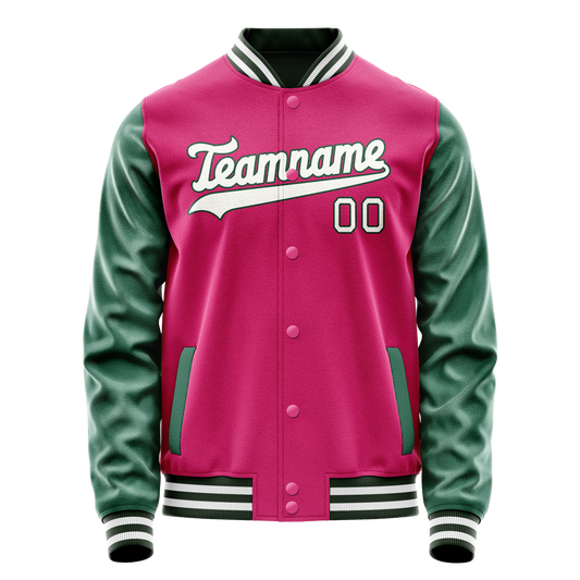 Custom Pink Kelly-Green Solid Color Varsity Letterman Jacket