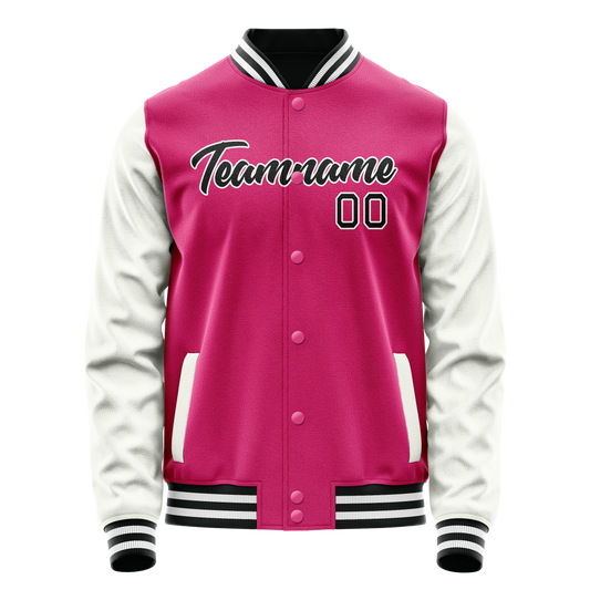 Custom Pink Black Solid Color Varsity Letterman Jacket