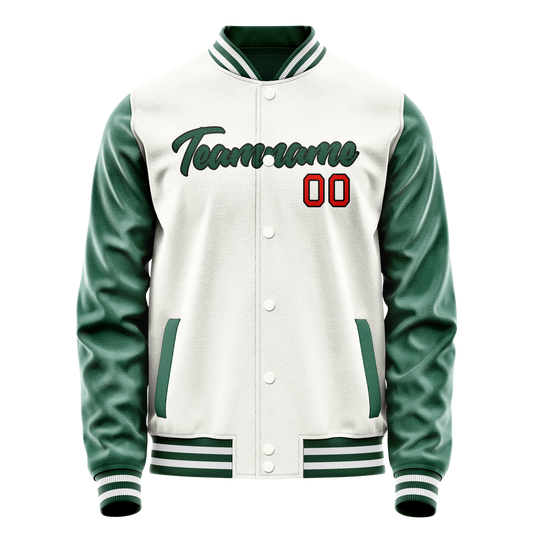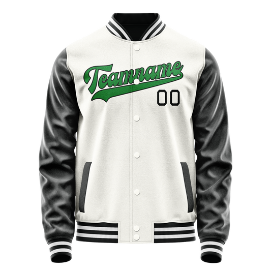 Custom White Kelly-Green Solid Color Varsity Letterman Jacket