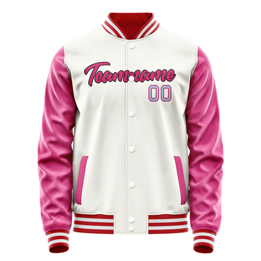 Custom Pink White Solid Color Varsity Letterman Jacket