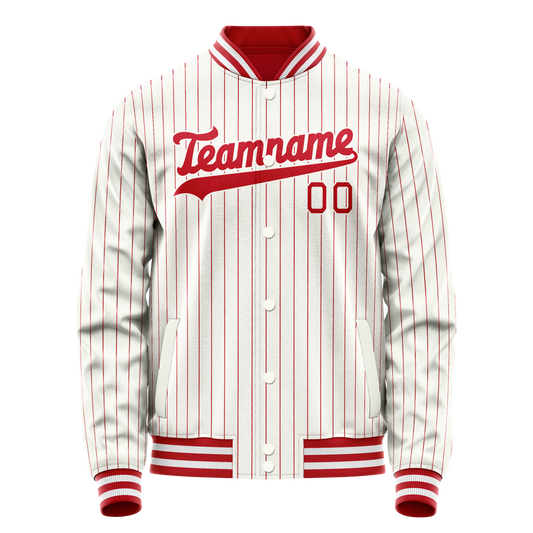 Custom White Red Red Pinstripe Varsity Letterman Jacket