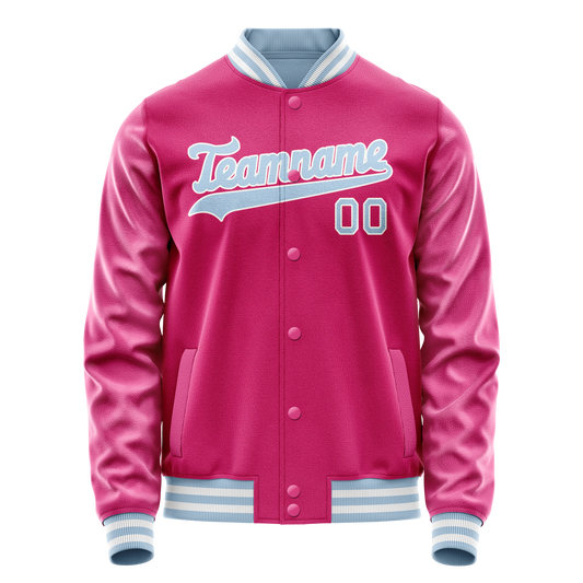 Custom Pink Light-Blue Solid Color Varsity Letterman Jacket