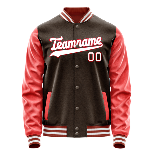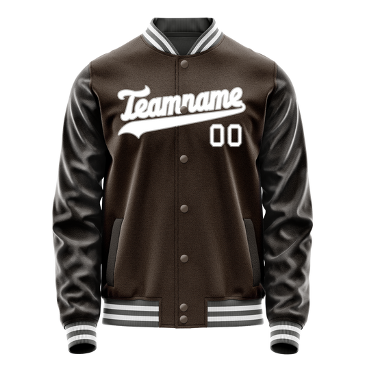 Custom Brown White Solid Color Varsity Letterman Jacket