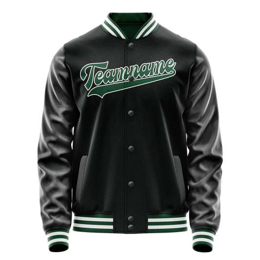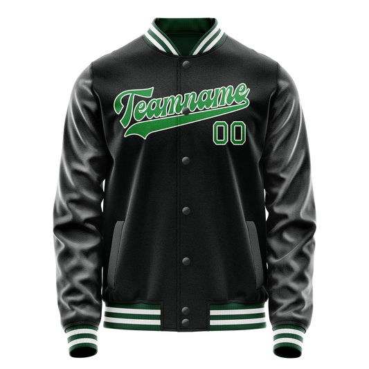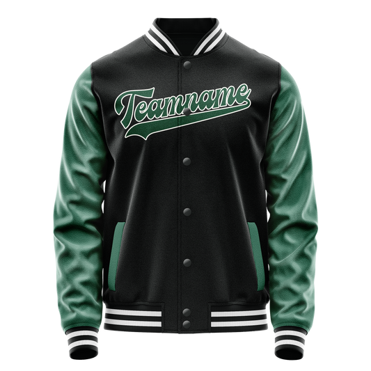 Custom Black Kelly-Green Solid Color Varsity Letterman Jacket