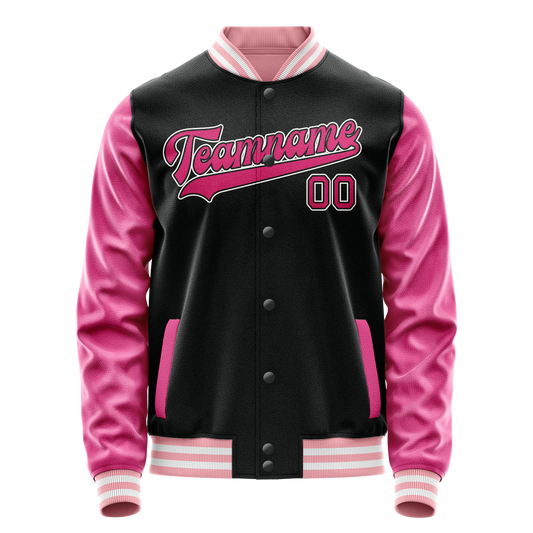 Custom Black Pink Solid Color Varsity Letterman Jacket