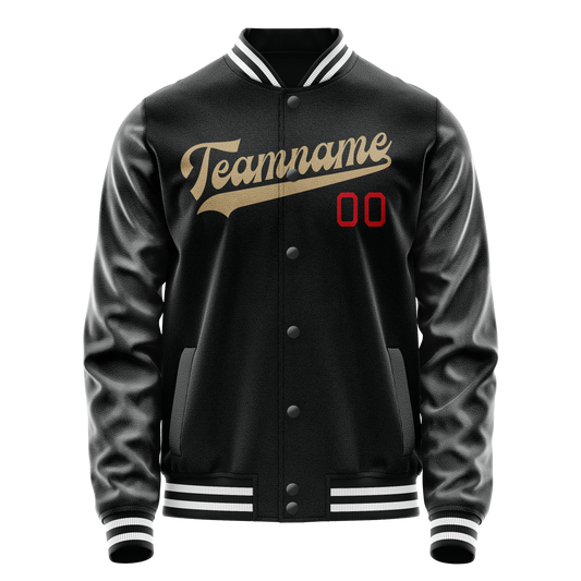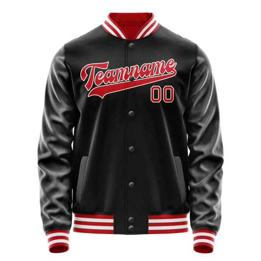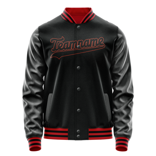 Custom Black Red Solid Color Varsity Letterman Jacket