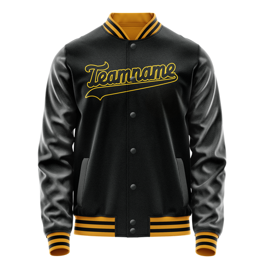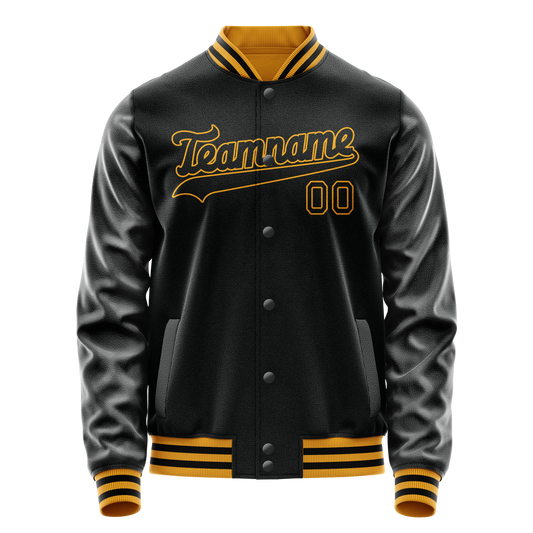 Custom Black Gold Solid Color Varsity Letterman Jacket