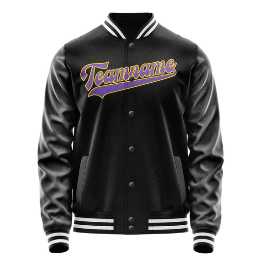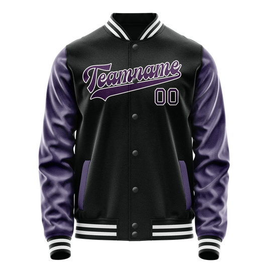 Custom Black Purple Solid Color Varsity Letterman Jacket