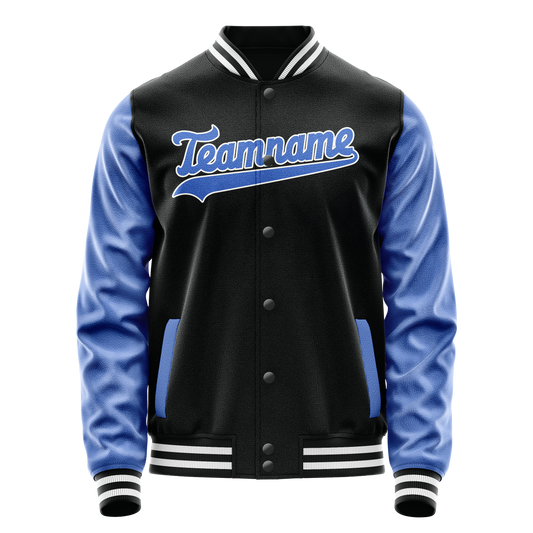 Custom Black Light-Blue Solid Color Varsity Letterman Jacket