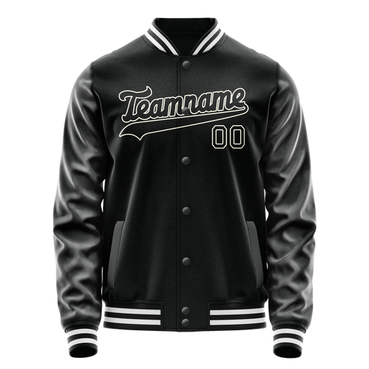 Custom Black Cream Solid Color Varsity Letterman Jacket