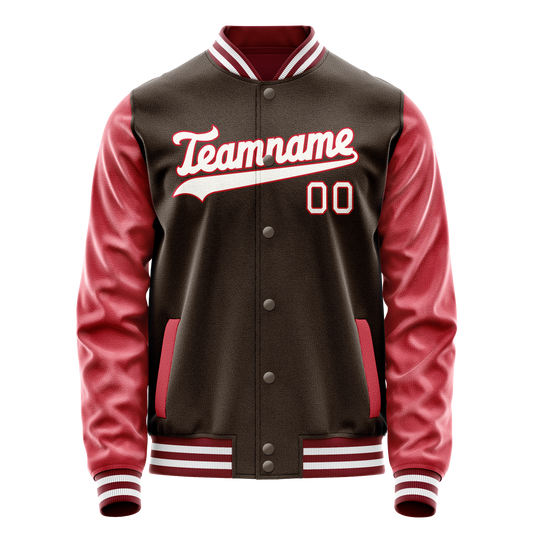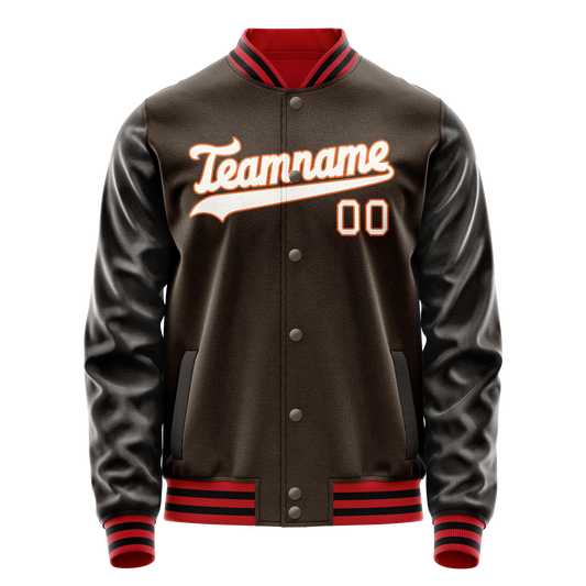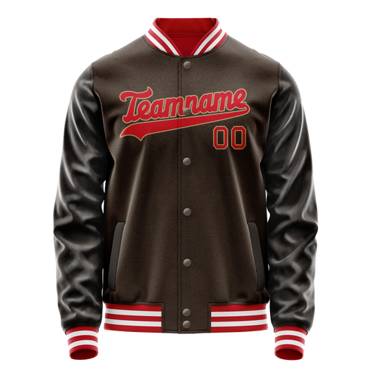 Custom Brown Red Solid Color Varsity Letterman Jacket