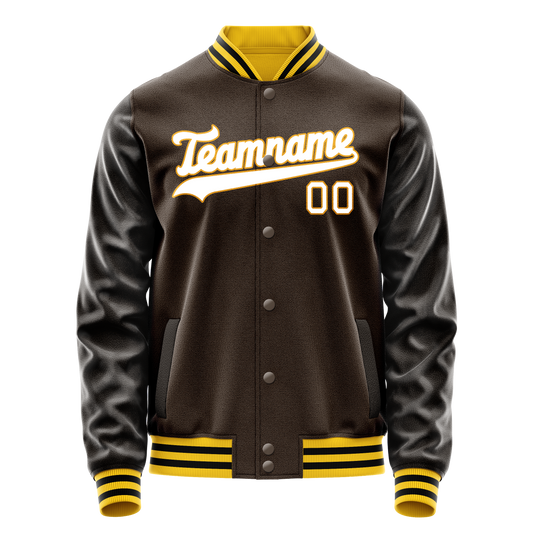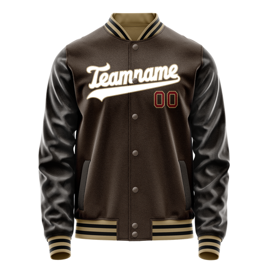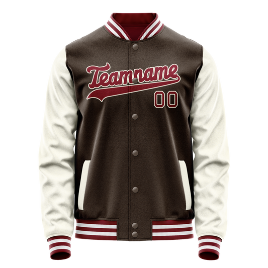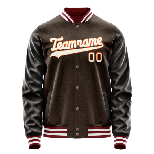 Custom Brown White Solid Color Varsity Letterman Jacket