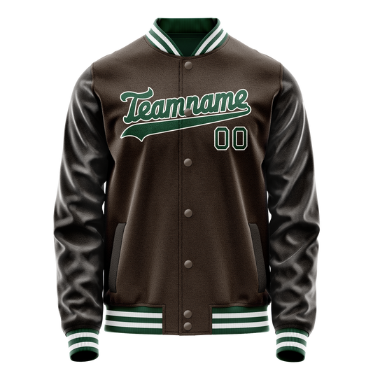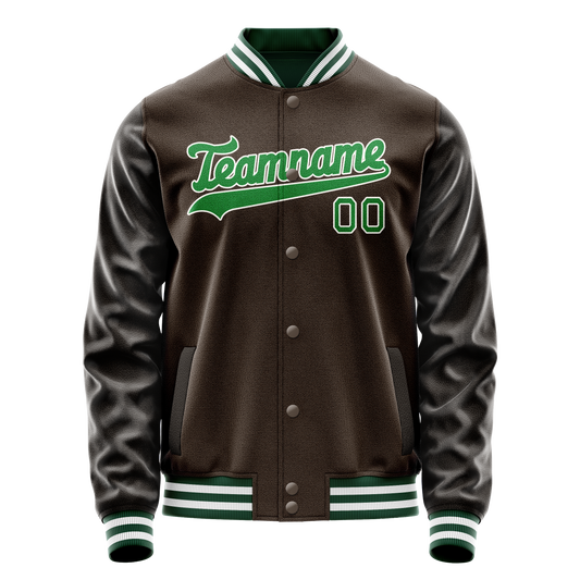 Custom Brown Kelly-Green Solid Color Varsity Letterman Jacket