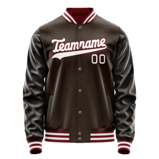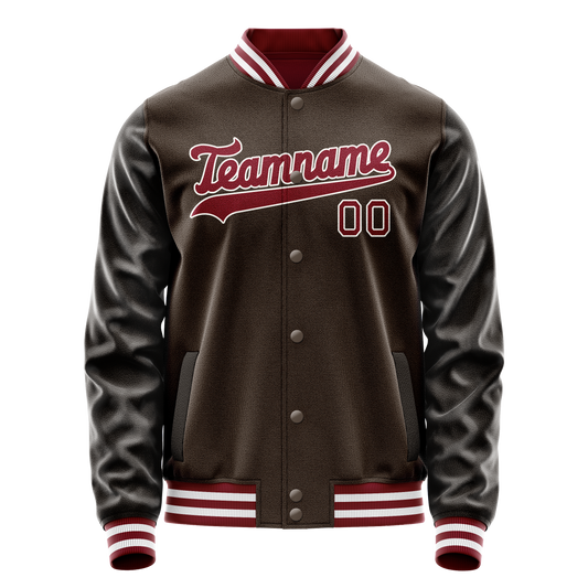 Custom Brown Crimson Solid Color Varsity Letterman Jacket