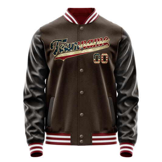 Custom Brown Cream Vintage Usa Flag Varsity Letterman Jacket
