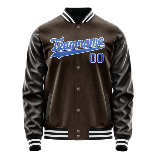 Custom Brown Light-Blue Solid Color Varsity Letterman Jacket