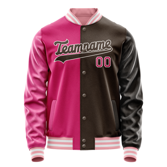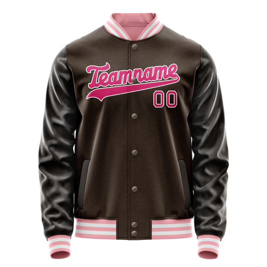 Custom Brown Pink Solid Color Varsity Letterman Jacket