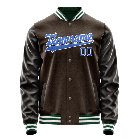 Custom Brown Teal Solid Color Varsity Letterman Jacket