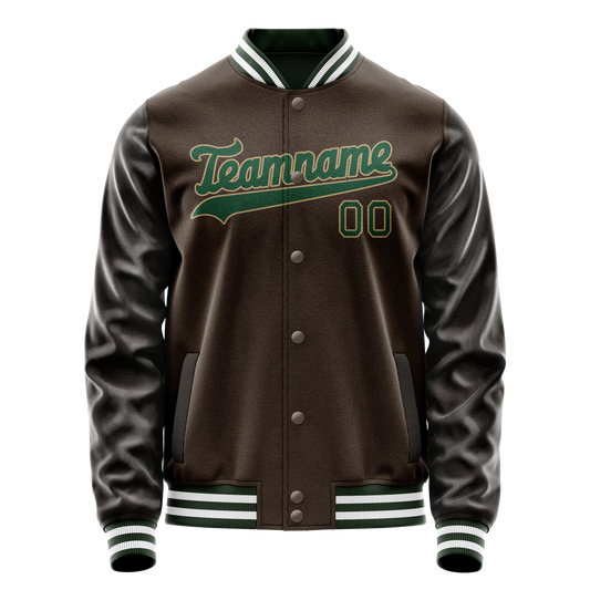 Custom Brown Kelly-Green Solid Color Varsity Letterman Jacket