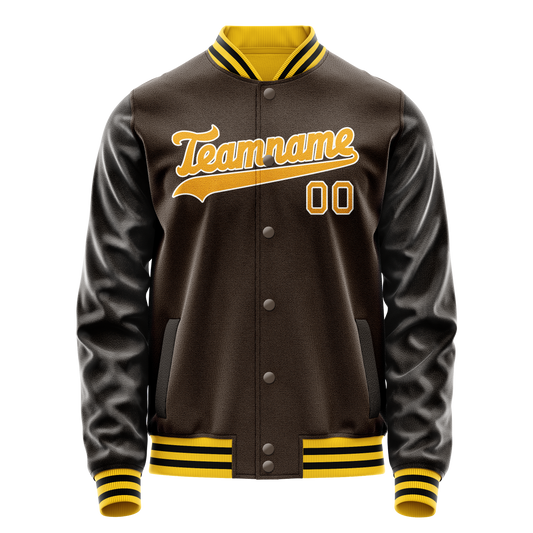 Custom Brown Gold Solid Color Varsity Letterman Jacket