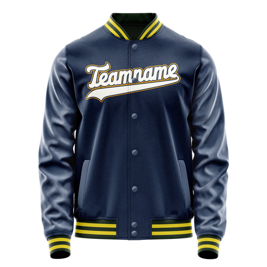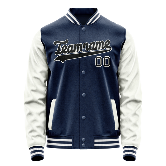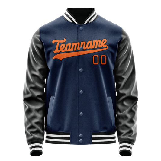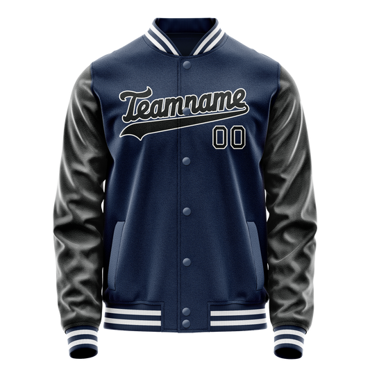 Custom Royal Black Solid Color Varsity Letterman Jacket