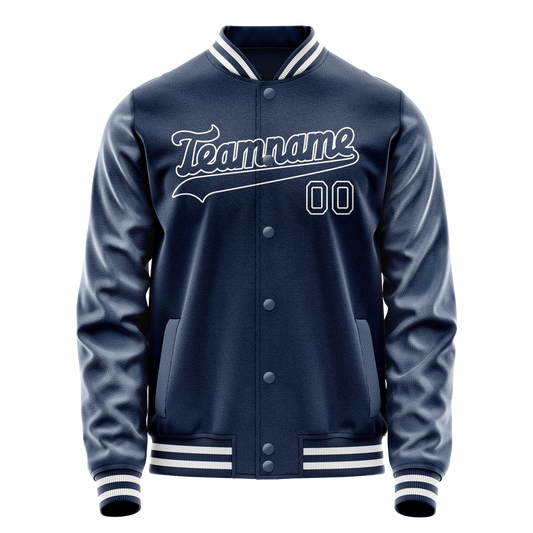 Custom Royal White Solid Color Varsity Letterman Jacket