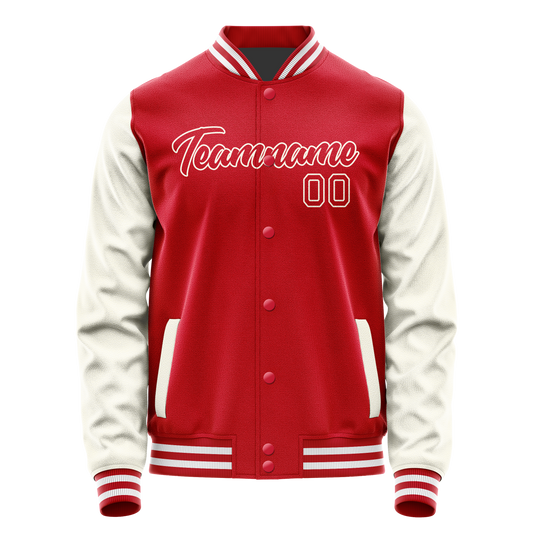 Custom Red Cream Solid Color Varsity Letterman Jacket