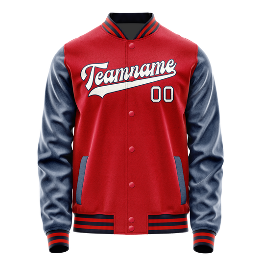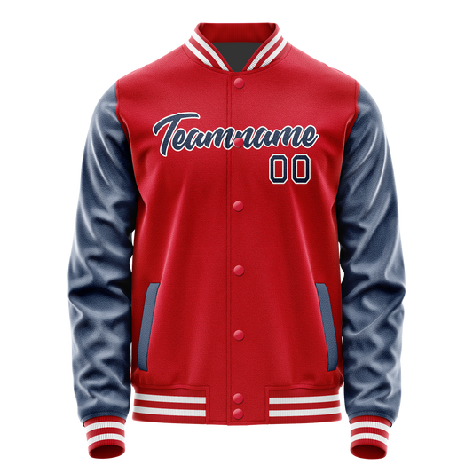 Custom Red Navy Solid Color Varsity Letterman Jacket