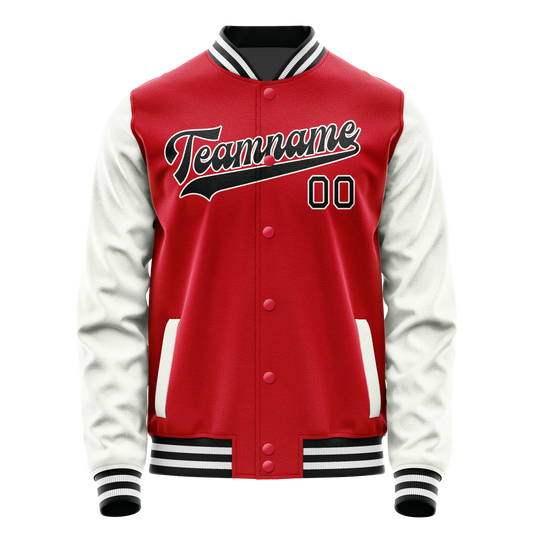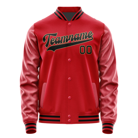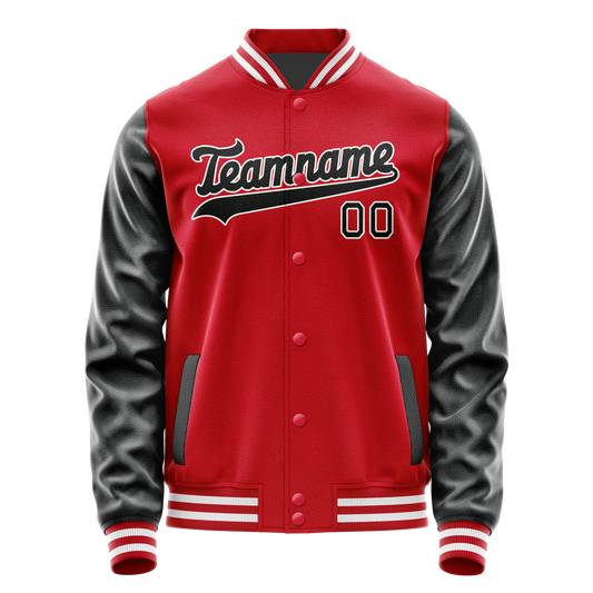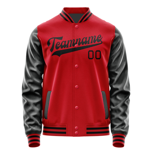 Custom Red Black Solid Color Varsity Letterman Jacket
