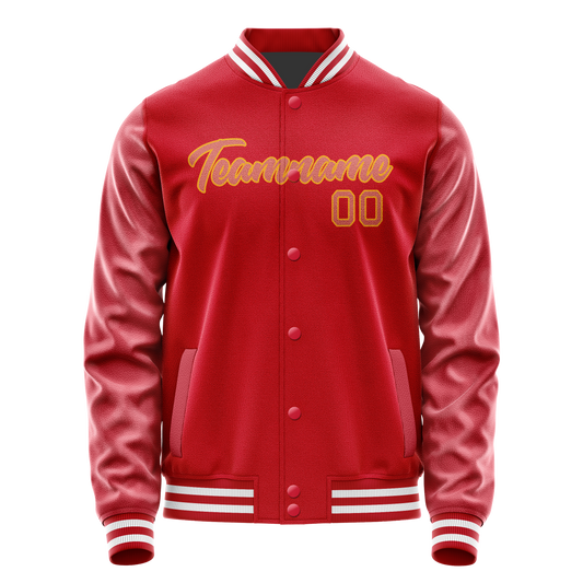 Custom Red Royal Solid Color Varsity Letterman Jacket