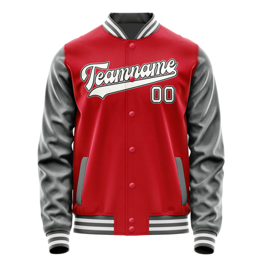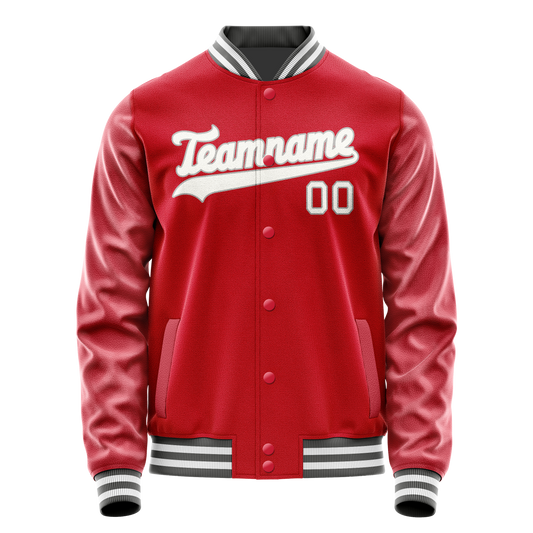 Custom Red Gray Solid Color Varsity Letterman Jacket